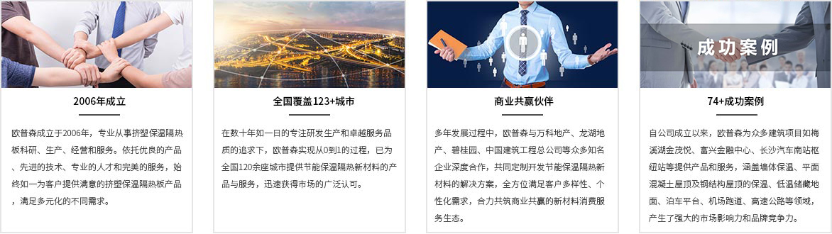 歐普森積極投身于節(jié)能環(huán)保新材料的生產(chǎn)應(yīng)用建設(shè),致力于為客戶提供專(zhuān)業(yè)的節(jié)能保溫解決方案和服務(wù),做大做強(qiáng)綠色節(jié)能建筑新材料企業(yè)品牌。歐普森將持續(xù)以人為本,以品質(zhì)為基,執(zhí)著于科技創(chuàng)新,追求企業(yè)效益、社會(huì)效益與生態(tài)環(huán)境的三贏!
